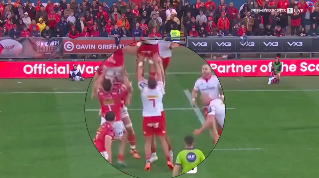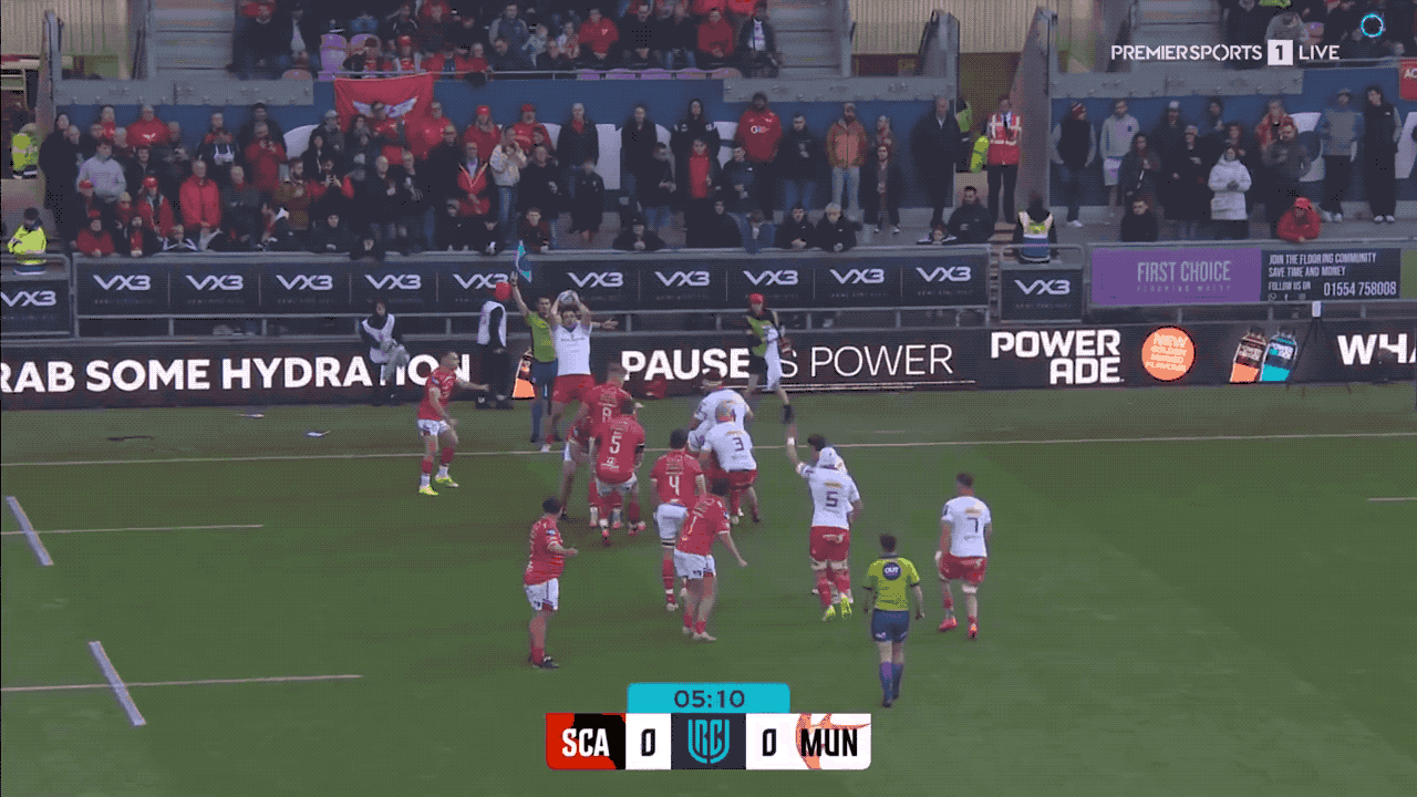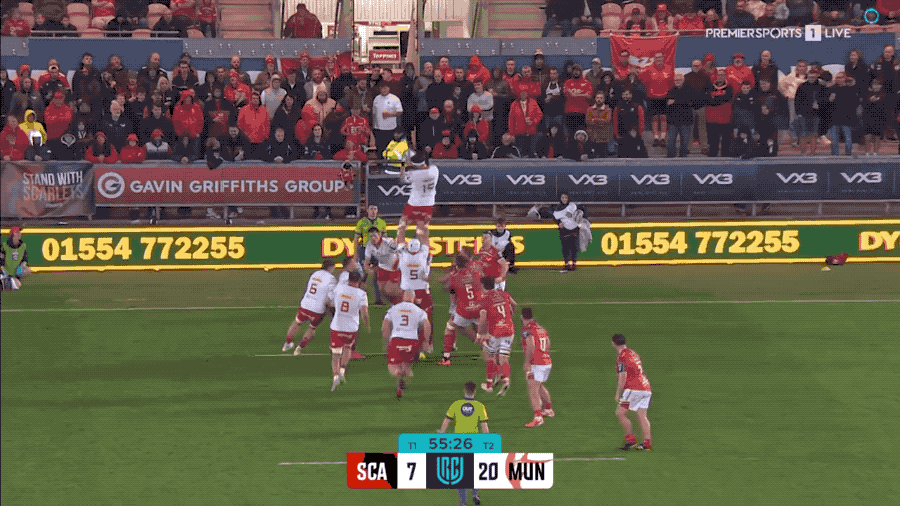 Here’s a good lineout to start — it’s a 5+1 with the Scarlets using Taine Plumtree, their best counter-jumper, at the front.