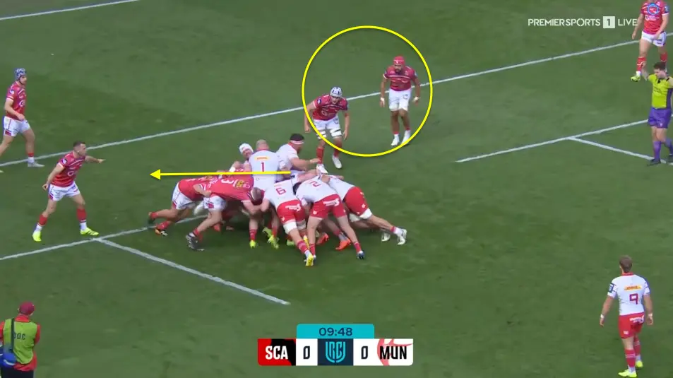 Regardless, it did the job. Four Scarlets forwards are caught on the touchline side, which leaves a massive space to break into on the posts side.