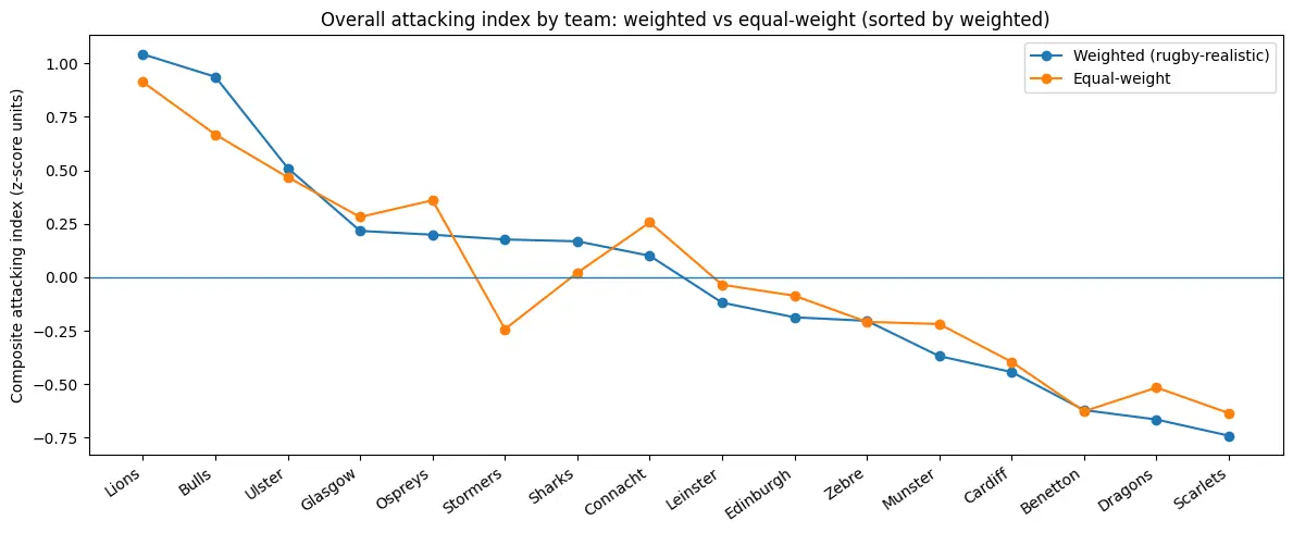 Rugby-realistic attacking index (the “stress-weighted” version)