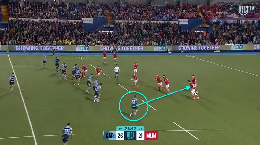 The shallowness was a real issue against Cardiff because, as we discussed before the game, nobody has more dominant tackles in the URC this season than Cardiff. You can see it here late in the game when we were back to 15 and chasing a winner. Nash does well on direct transition, but our work after that was… weak.