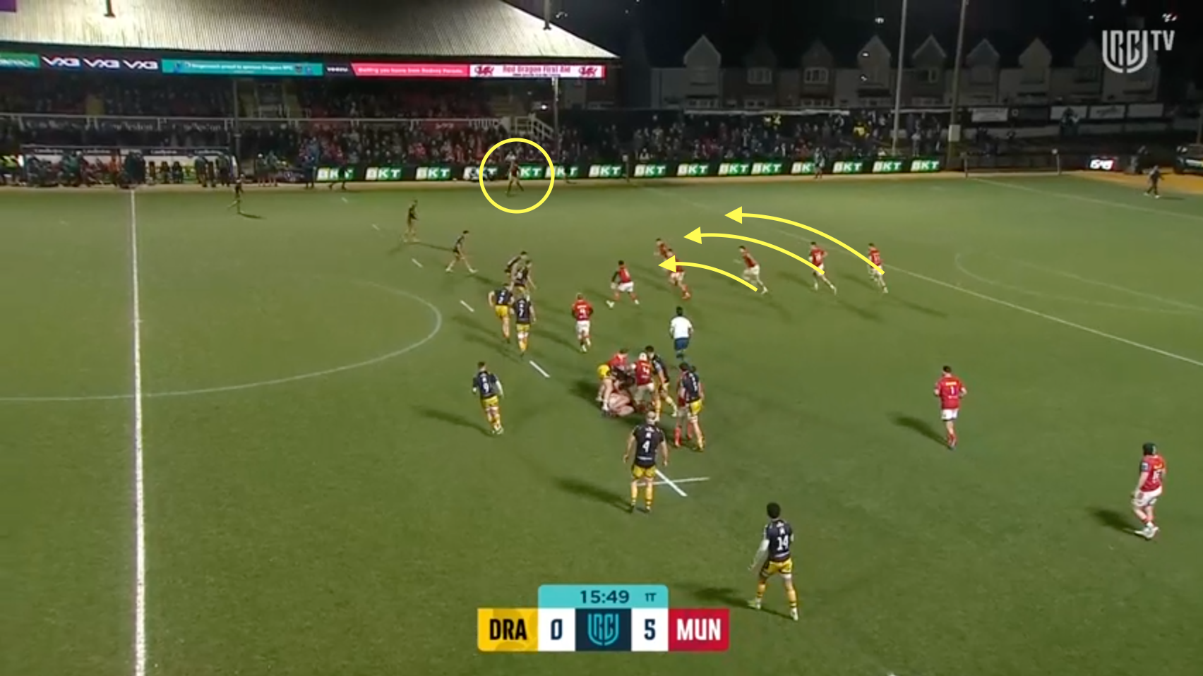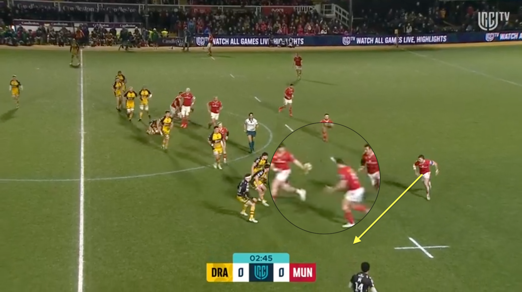 Off that ruck, Munster have already got a transition shape in position albeit with Ahern and Scannell switching positions.