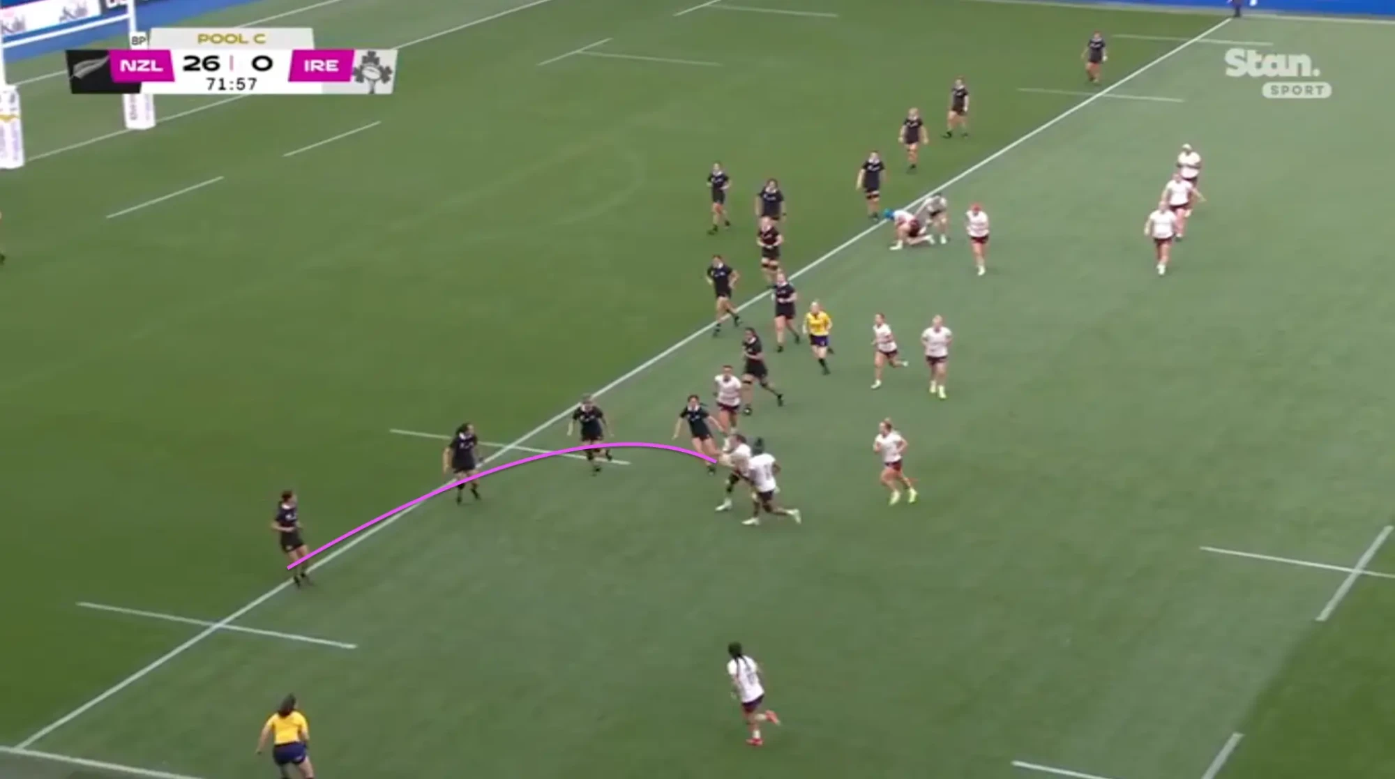 Reilly plainly isn’t expecting that late pinch line either, as her last look before release is at O’Brien standing outside the second last Black Fern defender.