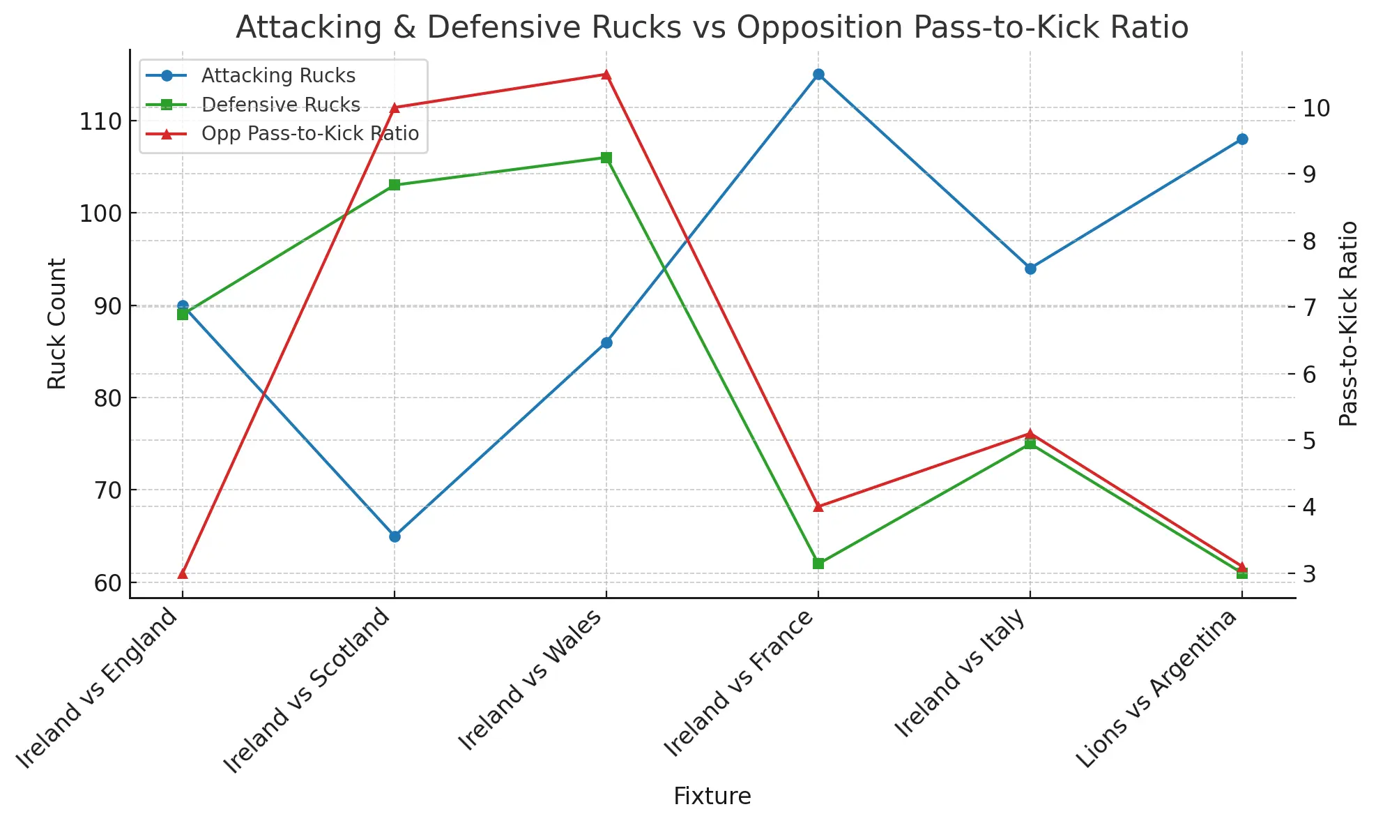• Attacking Rucks: Ireland v France 115 → Lions v Argentina 108