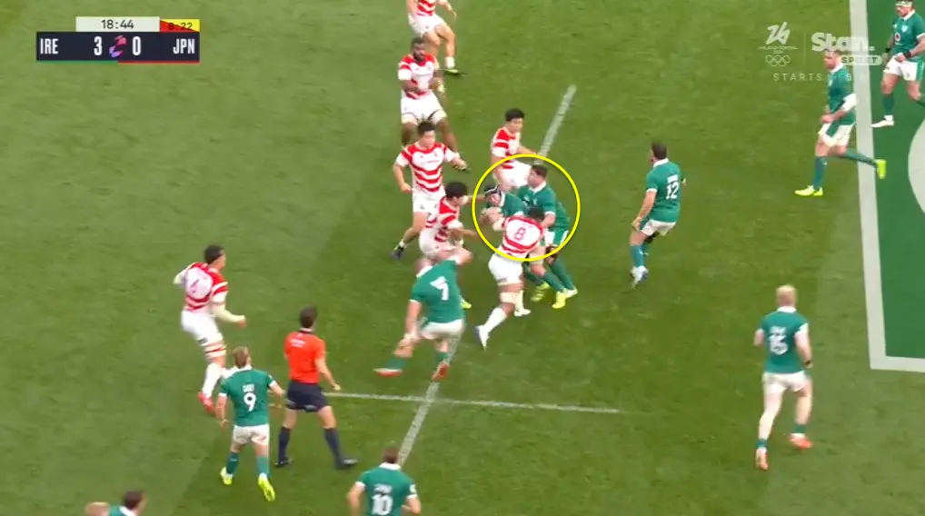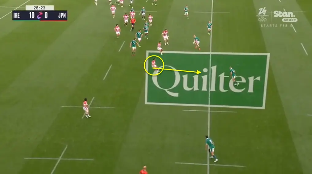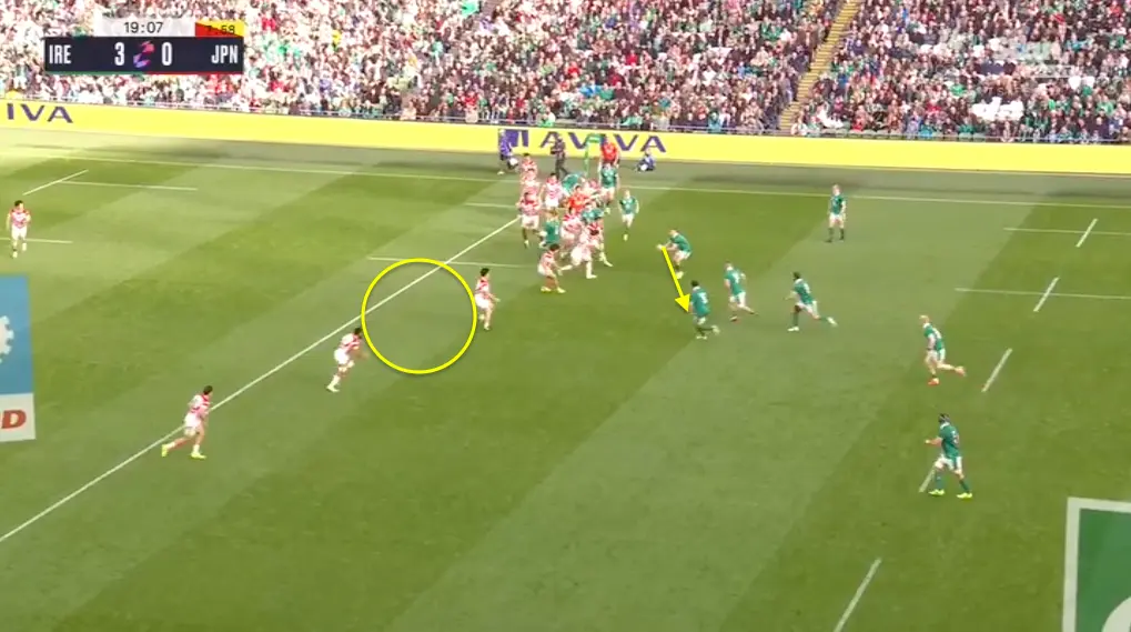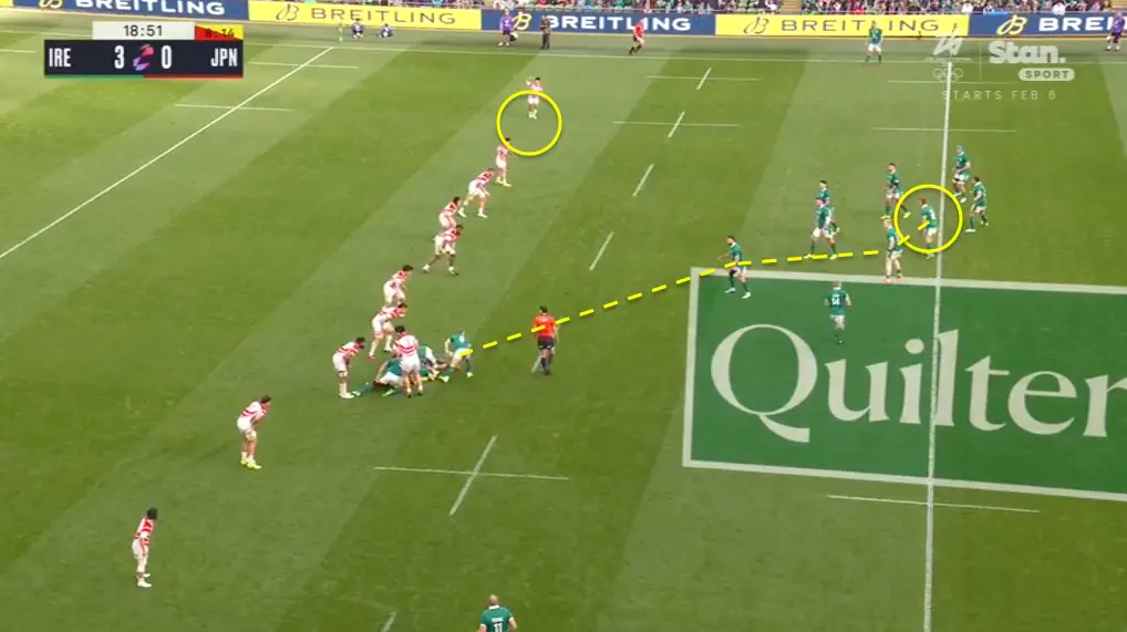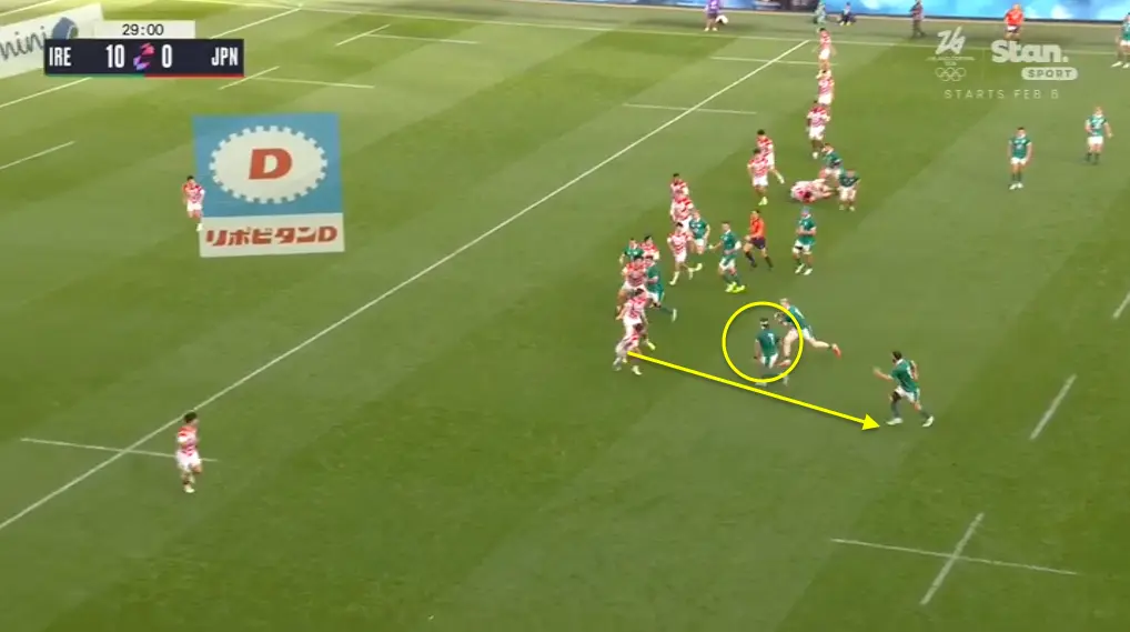 This was a seven-second collision point. Japan will be gutted to have conceded from here, but Ireland did really well to get Crowley into the one spot where Japan were scrambling to cover.