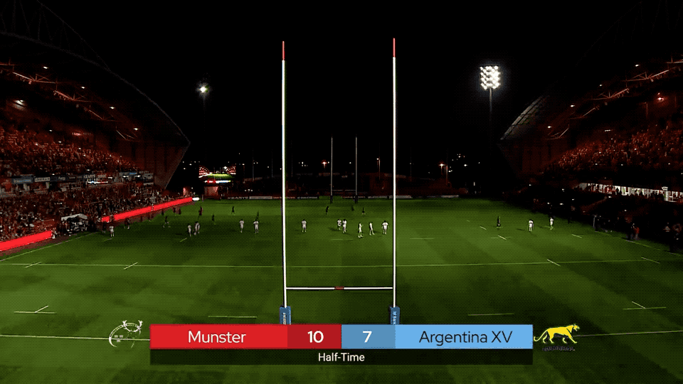The opening 20 minutes were close in combat. Argentina played like you’d expect a scratch side to play — they used a lot of pick and goes, hits off #9 and then wider releases to the backline, with almost all of their pack in a narrow formation around every ruck. They backed their physicality and size advantage to grind Munster down, along with their very heavy scrummage. It was as classically Argentinian a challenge as you might expect.