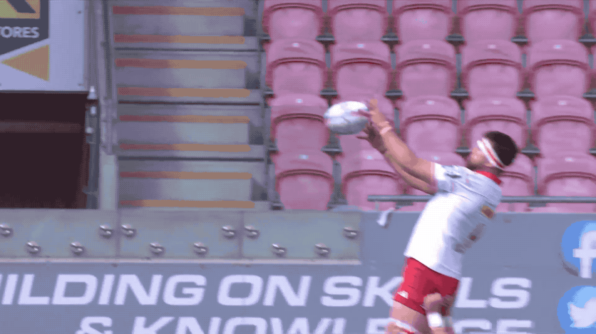 He’s an incredibly mobile, aggressive and has the air of a leader about him. One moment really stood out — not his sharp passing for Haley’s try, not his own try, but this in the first half. He gets stepped on a tackle, but gets back up and hairs after the ball, forcing a turnover with his recovery tackle.