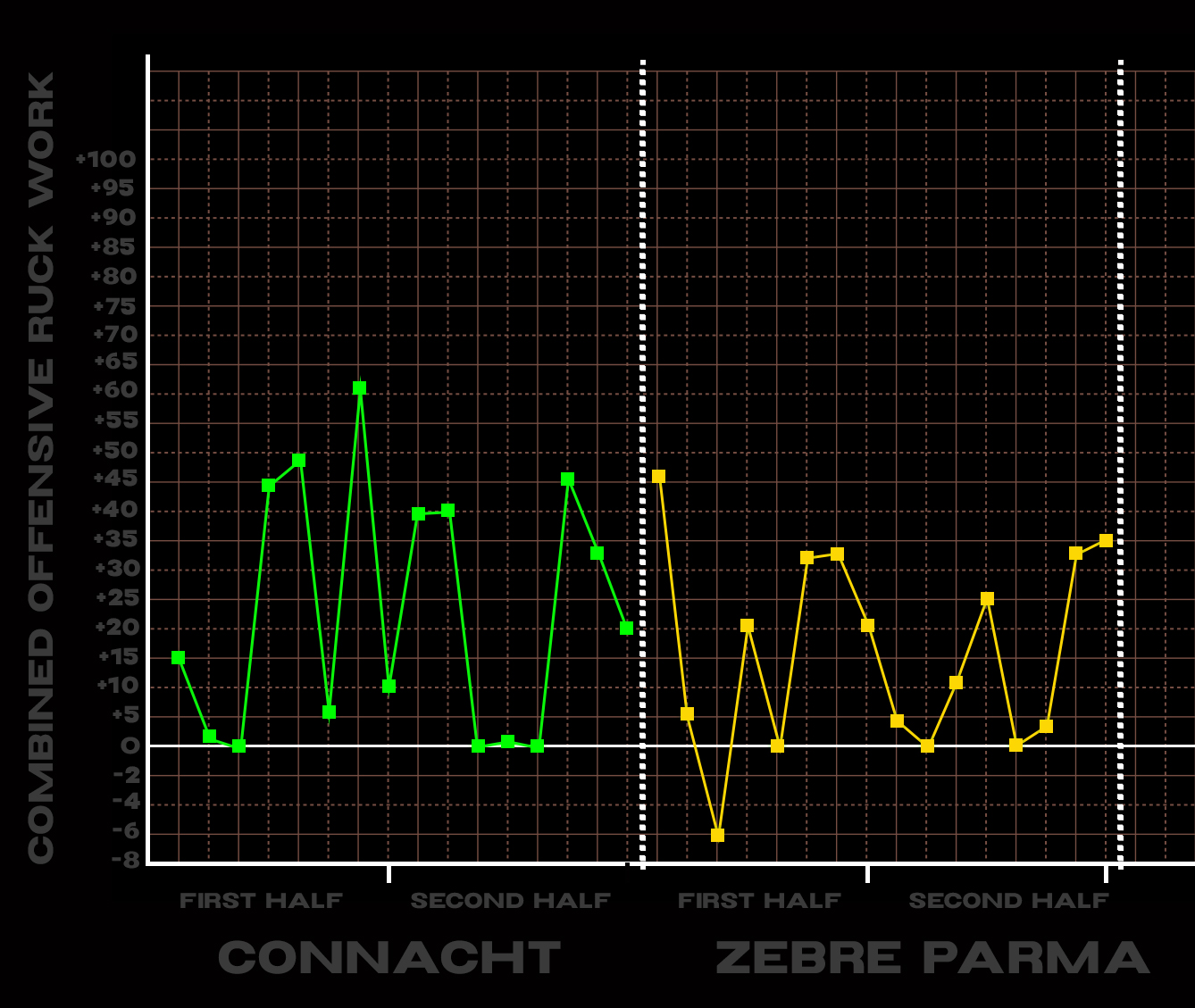 If we look at the same period against Connacht, we can see it’s the big difference maker in the two results.