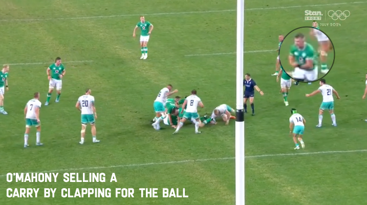 With 77 minutes on the clock and a lineout on the Irish 10m line… well, the World Champions weren’t going to cough up a loss from here. Right? They take the ball at the front – contested – but build a maul and then launch Van Staden up the fringe at the inside #10 channel.