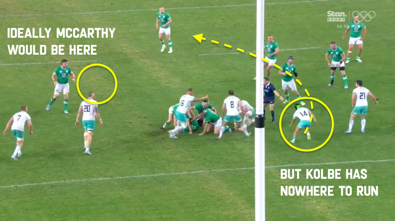 Sure, Ireland counter-punched here and that winning play was, what, probably a one in ten? One in fifteen? But you earn that luck. Ireland were bristling with aggression for the entire game and got early marks on Mostert and Etzebeth. After the week that was and the callow work in the first test, it felt good to see Mostert and Etzebeth split open early. No free lunches this week. No backward steps. No fear.