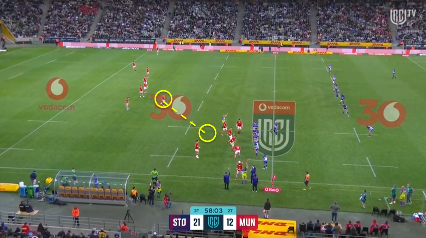 We had the same requirements; a five-man scheme hitting the scrumhalf on the run to move the ball into the middle of the field and we chose to go about it in broadly the same way. Of course, the Stormers pressured us. Why wouldn’t they? We showed them the same thing in the shell game and hid the ball under the same cup.