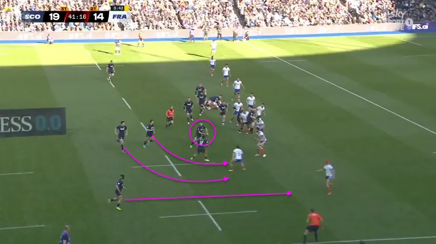 Scotland are really good — at their best, it’s the best thing they do — at winning quick ball with only one or two cleaners max, which allows them to pull and drag defences all over the place, especially on back-to-back blindside plays. This is a long clip, but it highlights something Scotland are really good at.